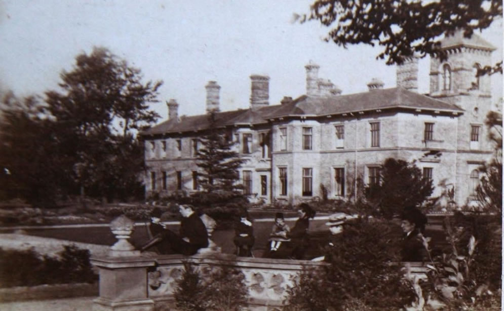 GRAVE SETTING: Nurses and patients behind the Friends Meeting House – you can see gravestones in the background