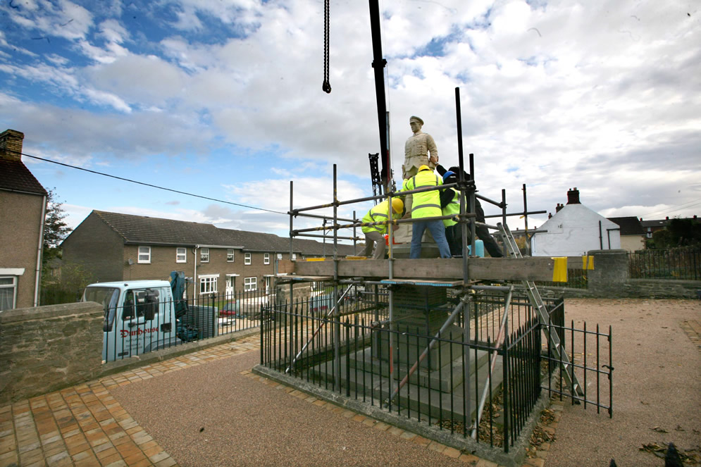The committee commissioned a replica to be carved out of Teesdale limestone from Dunhouse quarry, near Staindrop, and it was hoisted into position ready for rededication on November 11, 2007.