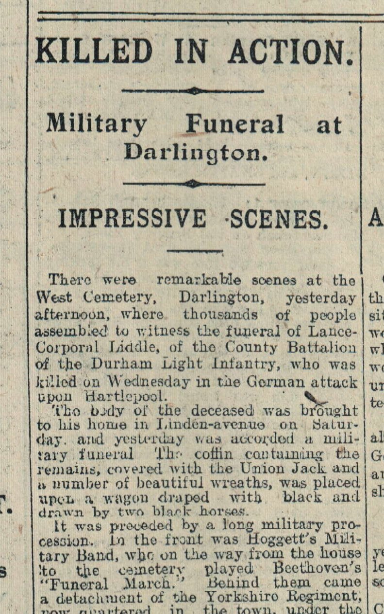 And he died in one of the notorious incidents of the war – the bombardment of Hartlepool.