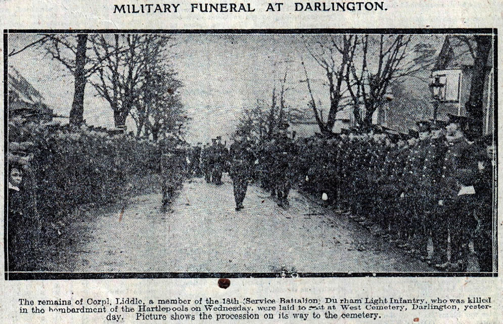 FITTING TRIBUTE: A photograph from The Northern Echo of December 21, 1914, showing Cpl Liddle’s funeral