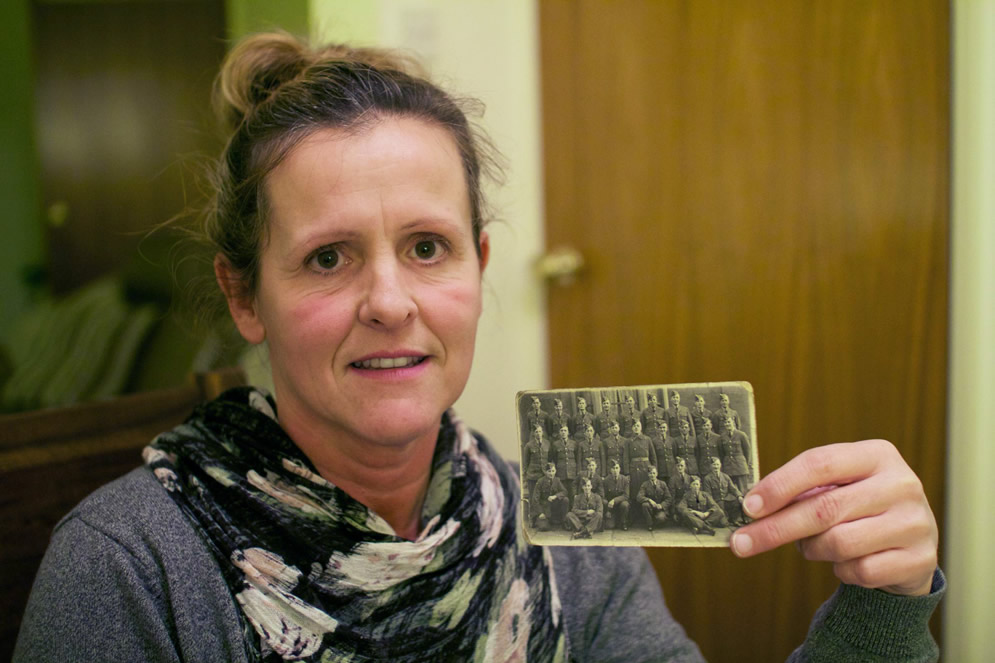 FAMILY PRIDE: Amanda Nelson with a photograph of her grandfather Wildfred Smith, with fellow soldiers before he was sent home from the war