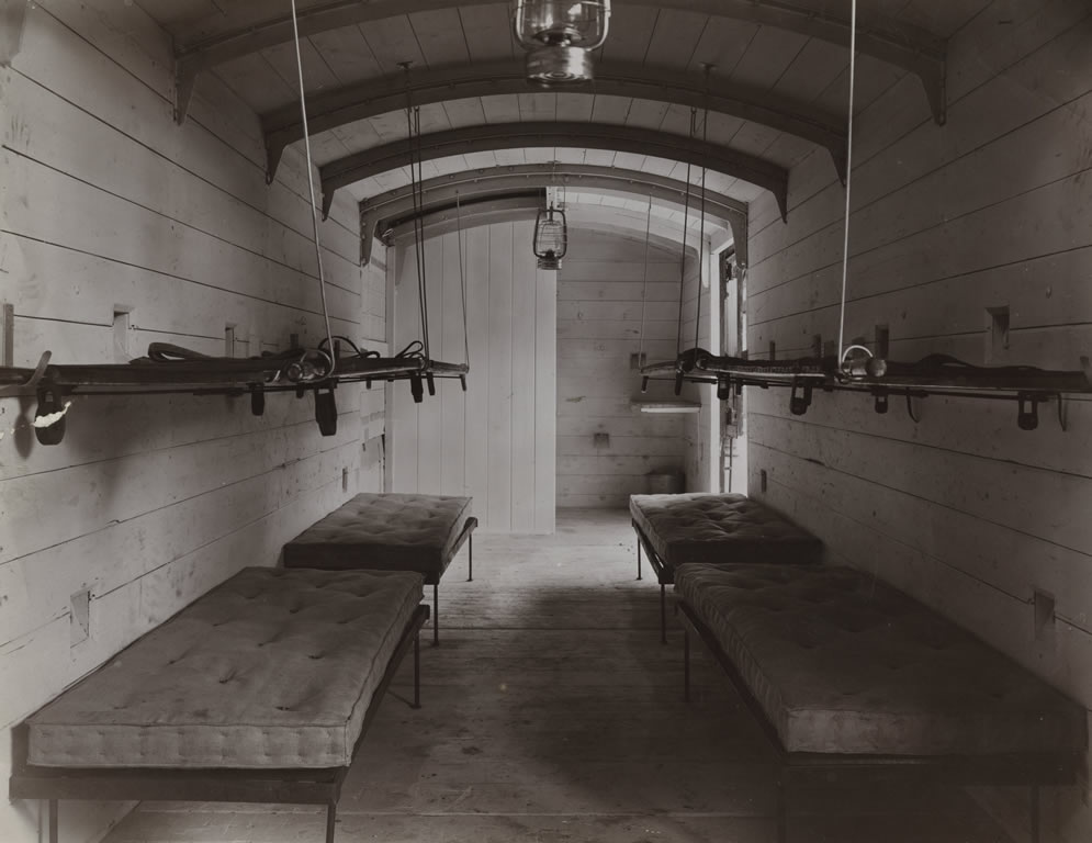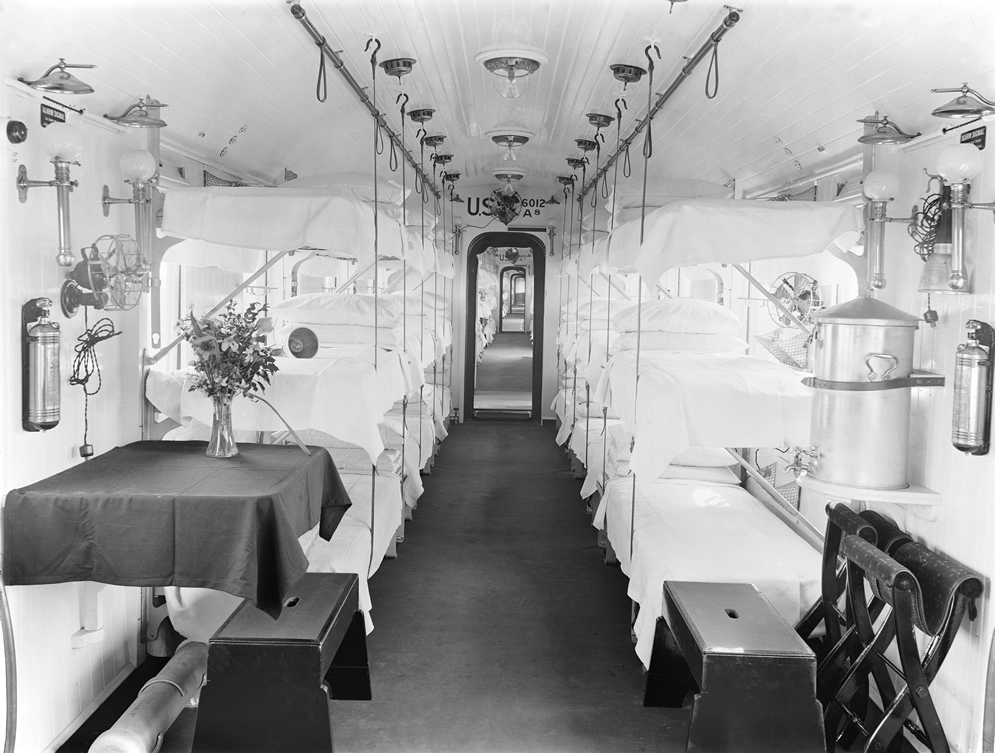 Each ward car contained 36 beds arranged in three tiers, so an ambulance train could accommodate about 400 injured men.