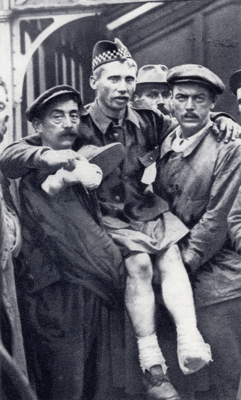 An Illustrated War News picture of porters at Boulogne, France, carrying a soldier who has been wounded